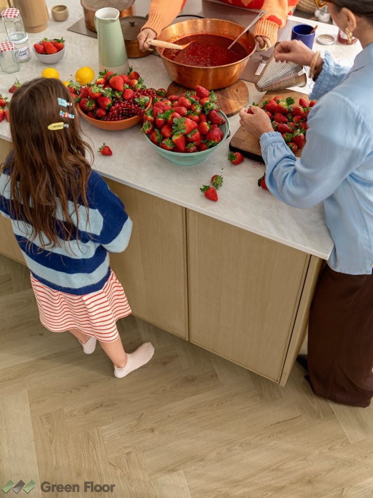 Hydrofobowa powłoka w połączeniu z wodoszczelnym systemem zatrzaskowym dają podłodze całkowitą wodoodporność. To właśnie dlatego podłogi winylowe Quick-Step Alpha Vinyl są nie tylko łatwe do sprzątania, ale także stanowią najlepszy wybór do kuchni, łazienek i innych stref narażonych na wilgoć.