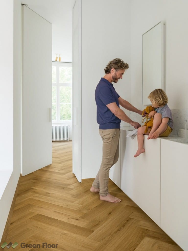 Panele podłogowe Quick-Step zostały pokryte innowacyjną wodoodporną powłoką ‘HydroSeal także w rowkach, co zapobiega przenikaniu wody. Mycie podłogi jeszcze nigdy nie było tak łatwe i bezpieczne.